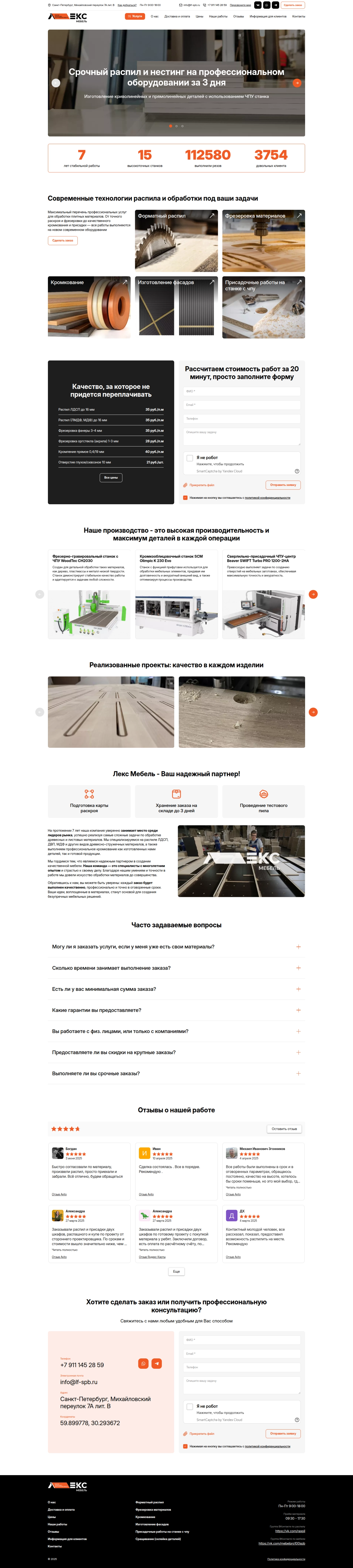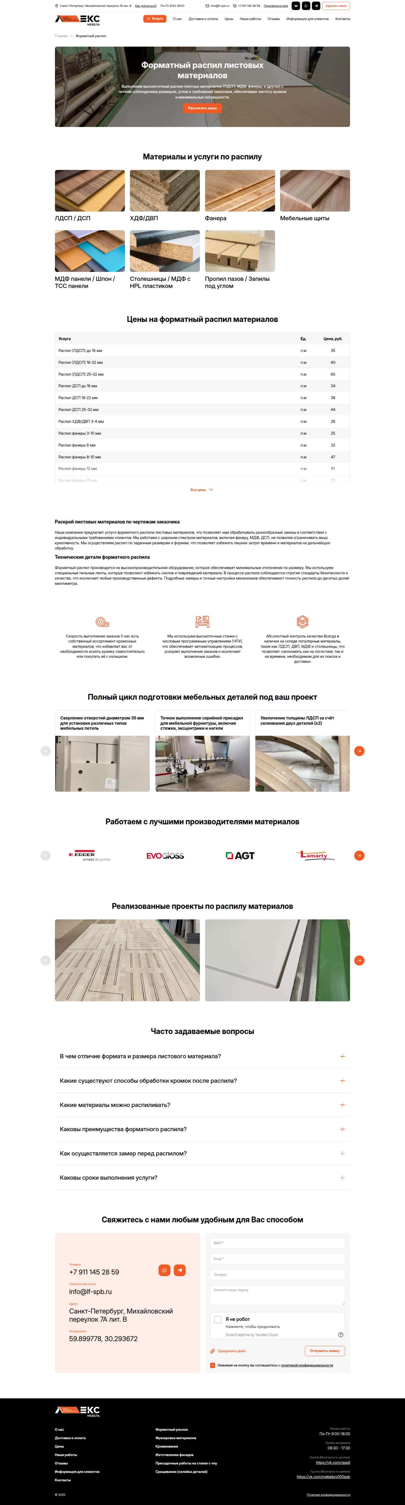 Страница услуг разбита на несколько блоков: небольшое описание, ценовые предложения, полное описание, общая информация о компании.